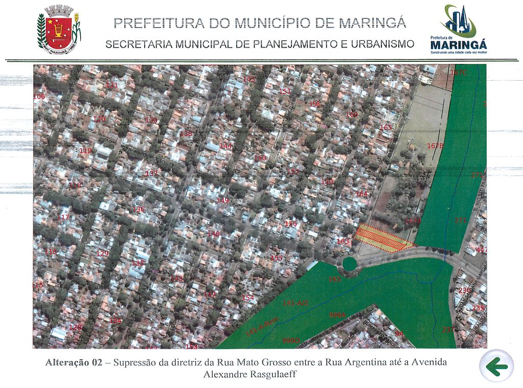 Citado em:Anexo I - Lei Complementar nº 886, de 18 de julho de 2011 - Fica suprimida no mapa de Diretrizes Viárias do Sistema Viário Básico do Município de Maringá – Anexo I da Lei Complementar n. 886/2011 a diretriz viária referente ao prolongamento da Rua Mato Grosso até a Avenida Dr. Alexandre Rasgulaeff, de acordo com o mapa Anexo desta Lei.