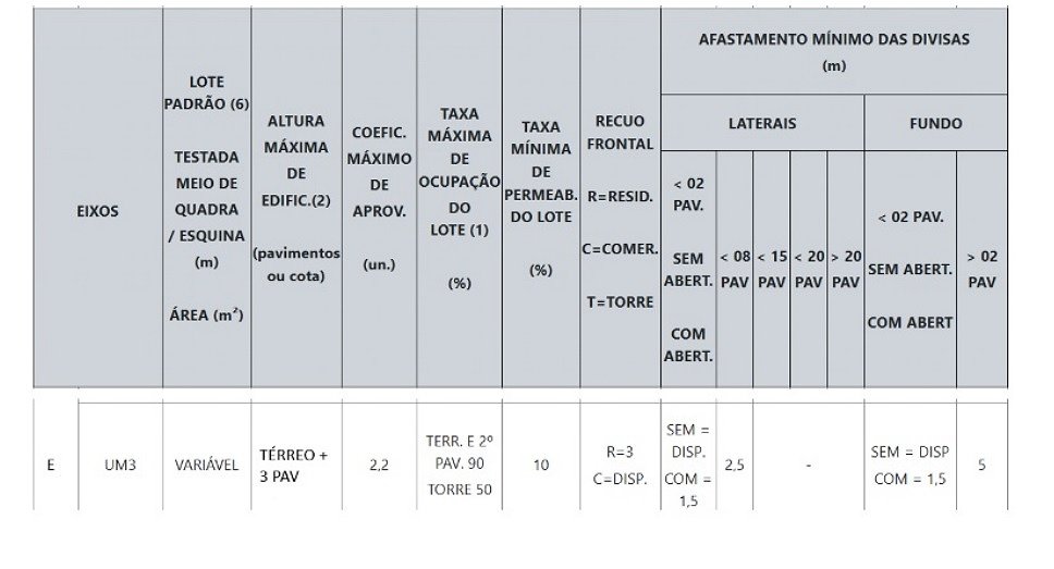 UM3 | VARIÁVEL | TÉRREO + 3 PAV | 2,2 | TERR. E 2º PAV. 90 TORRE 50 | 10 | R=3 C=DISP. | SEM = DISP. COM = 1,5 | 2,5 | - | SEM = DISP COM = 1,5 | 5 | ||||