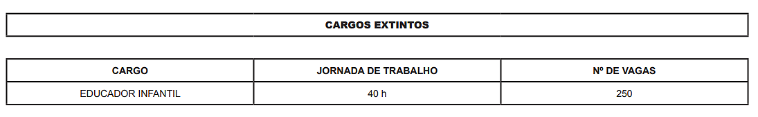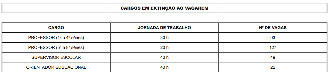 ANEXO III – Tabela de cargos extintos no Magistério Público Municipal.