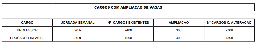 Vide:Caput do Art. 1º. - Lei Complementar nº 1.481, de 01 de abril de 2025 - (Amplia a quantidade de vagas do cargo de professor 20h)