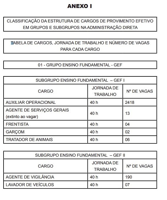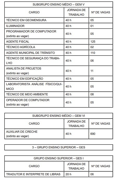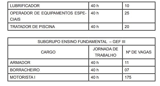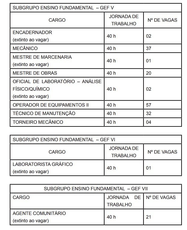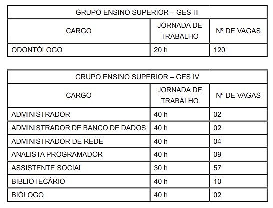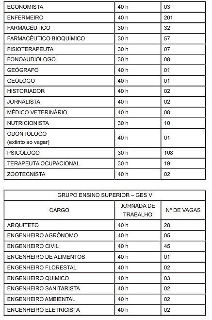 | CARGO | JORNADA DE TRABALHO | Nº DE VAGAS |