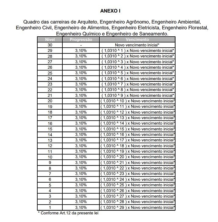 Sem qualquer majoração, fica fixado o valor do novo vencimento inicial das carreiras dos cargos de Arquiteto, Engenheiro