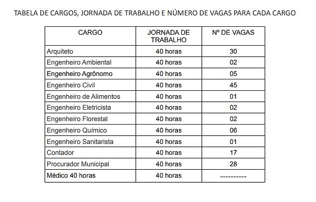 jornada de 40h, e Procurador Municipal, que serão organizadas