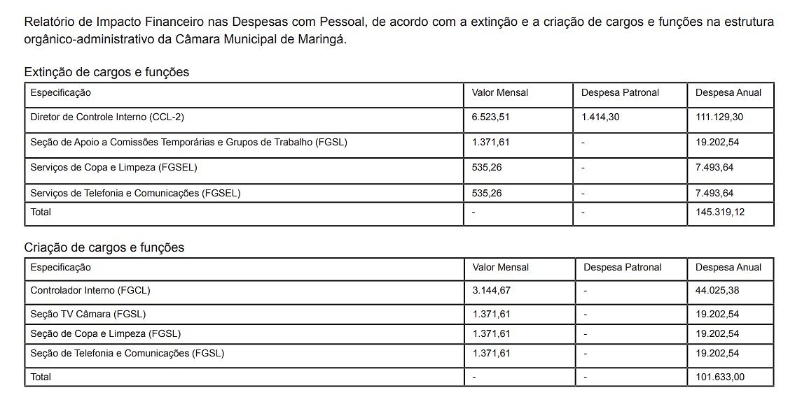 Art. 2.º Os cargos de provimento em comissão e as funções gratificadas da Câmara Municipal de Maringá, observadas as disposições desta Lei, são de livre nomeação e exoneração do Presidente da Câmara e se destinam às atividades de assessoramento, direção e chefia do Poder Legislativo.