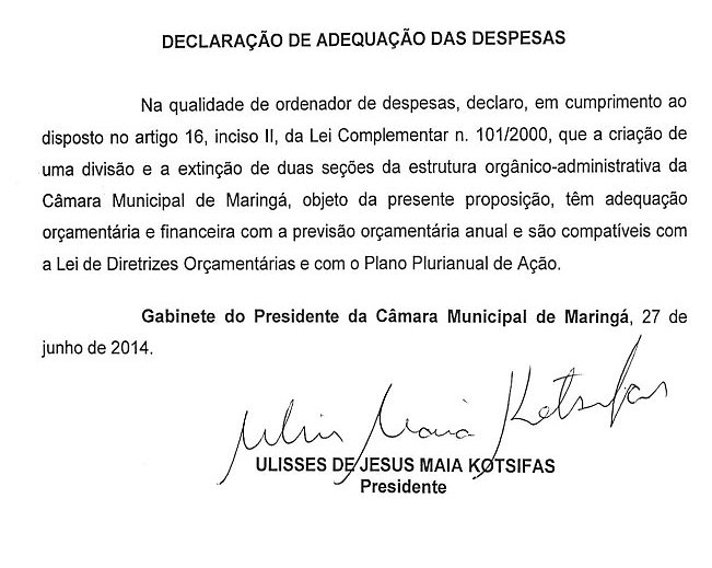 Art. 3.º São órgãos da Câmara Municipal de Maringá: