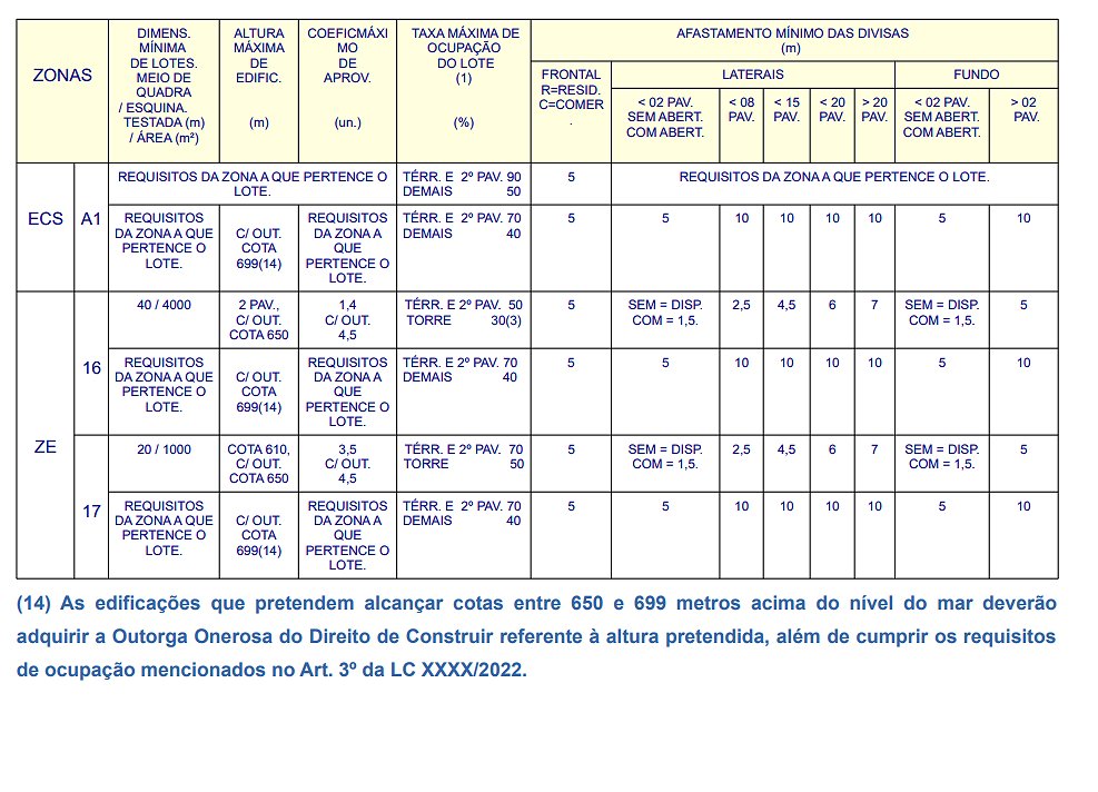 altura máxima de edificação: 699 (seiscentos e noventa e nove) metros